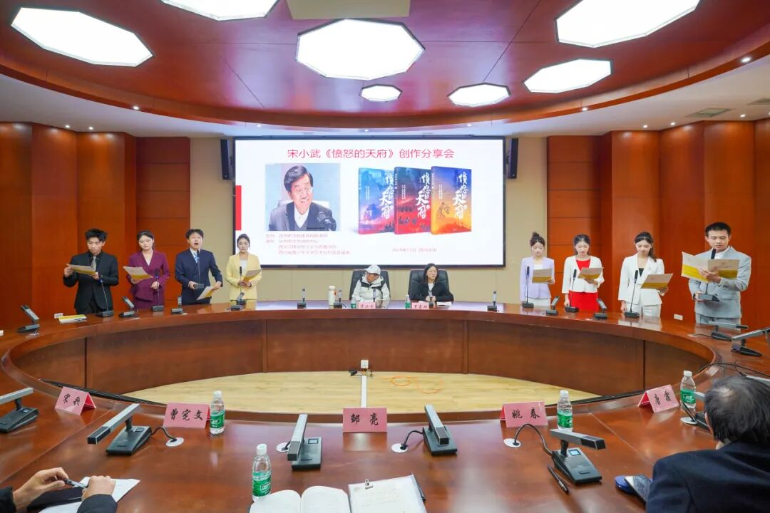 11月26日,由基地与达州市文艺创作中心联合承办的一级编剧宋小武长篇小说《愤怒的天府》创作分享会在学校弘德楼二楼会议室举行。达州市文艺创作中心主任罗嘉琳主持分享会,基地主任曾宪文致辞。基地专家姚春等教师以及星光文学社成员、文学爱好者到场参加。
